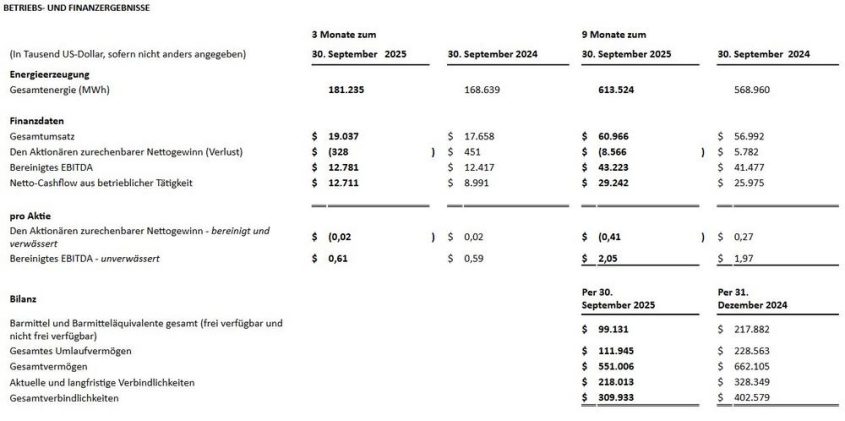 Polaris Renewable Energy gibt die Ergebnisse für das 3. Quartal 2025 bekannt