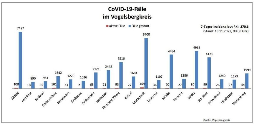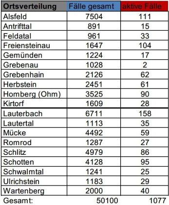 . Das Gesundheitsamt des Vogelsbergkreises meldet am Dienstag 64 Neuinfektionen mit SARS-CoV-2 im Kreisgebiet. Die Behörde registrierte weiterhin 138 Genesene, somit werden aktuell 1.077 aktive Fälle betreut. Ein 76-Jähriger ist im Zusammenhang mit einer CoViD-19-Erkrankung verstorben. Für den Vogelsbergkreis weist das Robert-Koch-Institut (RKI) eine Sieben-Tage-Inzidenz von 229,0 aus. Hessenweit liegt der Wert bei 190,5. Die […]