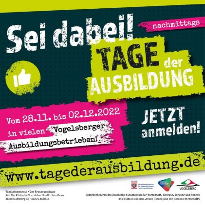 Es ist wieder soweit, die nächsten Tage der Ausbildung stehen an: Vom 28. November bis 2. Dezember haben Jugendliche wieder die Chance, sich nachmittags direkt in den Ausbildungsbetrieben umzuschauen und Ausbildungsberufe kennenzulernen. Interessant ist das Angebot übrigens auch für Schüler, die ihren Abschluss erst in ein oder zwei Jahren machen. Sie können die Tage der […]