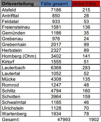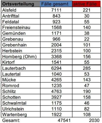 Am Dienstag meldet das Gesundheitsamt des Vogelsbergkreises insgesamt 388 Neuinfektionen mit SARS-CoV-2 über das Wochenende. Die Behörde registriert weiterhin 724 Genesene. Somit werden aktuell 2.030 aktive Fälle betreut. Für den Kreis weist das Robert-Koch-Institut (RKI) eine Sieben-Tage-Inzidenz von 1.261,5 aus. Hessenweit liegt der Wert bei 898,0. Die Sieben-Tage-Inzidenz der Hospitalisierungen liegt in Hessen bei 10,02. […]