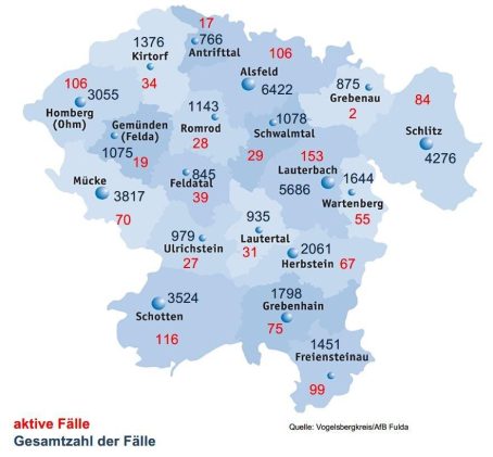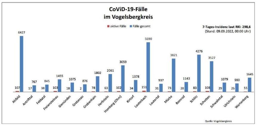 Das Gesundheitsamt des Vogelsbergkreises meldet am Freitag 37 neue Corona-Fälle. 48 Menschen haben sich als genesen gemeldet, sodass die Behörde aktuell 1.146 aktive Fälle betreut. Für den Vogelsbergkreis weist das Robert-Koch-Institut (RKI) eine Sieben-Tage-Inzidenz von 298,6 aus. Hessenweit liegt der Wert bei 260,7. Die Sieben-Tage-Inzidenz der Hospitalisierungen liegt in Hessen laut RKI bei 3,27. Die […]