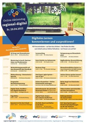 24 verschiedene, kostenfreie Veranstaltungen erwarten die Teilnehmerinnen und Teilnehmer des Online-Aktionstags der Volkshochschule (vhs) des Vogelsbergkreises am Freitag, 29. April. Zwischen 9.30 und 20.30 Uhr wird es durchgängig ein abwechslungsreiches Online-Angebot mit Kursen, Vorträgen und Talks geben, die die ganze Palette der vhs-Arbeit abbilden. Organisiert und getragen wird die Veranstaltung von der regionalen Kooperationspartnerschaft regional-digital@vhs. […]
