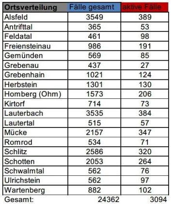 Das Gesundheitsamt des Vogelsbergkreises meldet am Samstag 198 Neuinfektionen mit SARS-CoV-2, die sich über alle Städte und Gemeinden des Kreises verteilen. 377 Menschen haben sich als genesen gemeldet, sodass die Behörde aktuell 3094 aktive Fälle betreut. Die Sieben-Tage-Inzidenz liegt laut Robert-Koch-Institut (RKI) für den Vogelsbergkreis bei 1744,9, hessenweit bei 1104,2. Die durch das RKI ausgewiesene […]