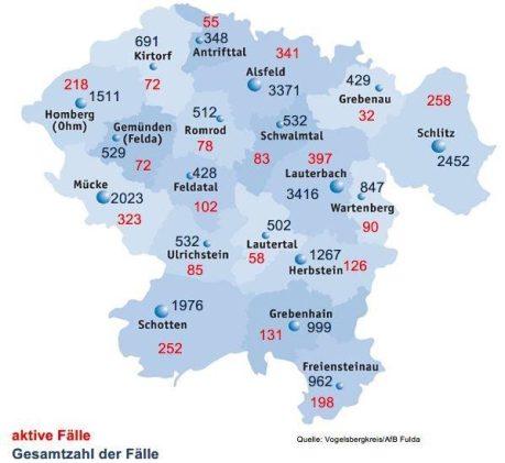 Das Gesundheitsamt des Vogelsbergkreises meldet am Donnerstag 492 Neuinfektionen mit SARS-CoV-2. Die Fälle verteilen sich auf alle Städte und Gemeinden des Kreises. Erneut hat sich niemand als genesen gemeldet, sodass die Behörde aktuell 3461 aktive Fälle betreut. Die Sieben-Tage-Inzidenz für den Vogelsbergkreis liegt laut Robert-Koch-Institut (RKI) bei 1931,6, für Hessen bei 1223,1. Die durch das […]