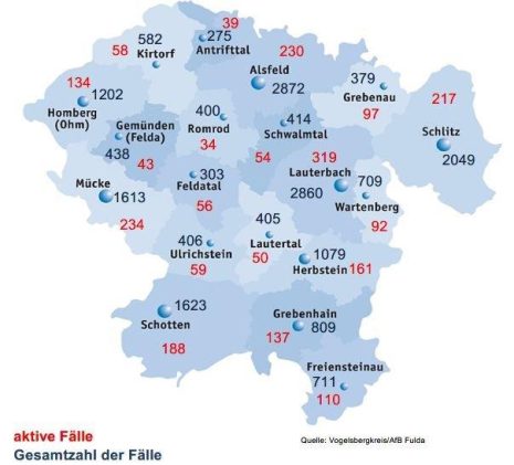 Das Gesundheitsamt des Vogelsbergkreises meldet am Mittwoch 259 Neuinfektionen mit SARS-CoV-2, die sich auf alle Städten und Gemeinden des Kreises verteilen. Es sind keine Genesenen-Meldungen bei der Behörde eingegangen, sodass dort aktuell 2312 aktive Fälle betreut werden. Das Robert-Koch-Institut (RKI) meldet für den Vogelsbergkreis eine Sieben-Tage-Inzidenz von 1693,7, hessenweit liegt der Wert bei 1404,8. Für […]