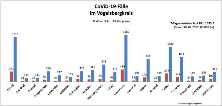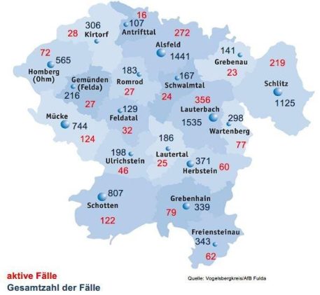 Das Gesundheitsamt des Vogelsbergkreises meldet 288 Neuinfektionen mit SARS-CoV-2. Diese sind auf verschiedene Städte und Gemeinden im Kreisgebiet verteilt. Aufgrund massiv steigender Corona-Fallzahlen weist das Dashboard des Robert-Koch-Instituts (RKI) eine abweichende Fallzahl aus. 115 Menschen meldeten sich beim Gesundheitsamt als genesen. Dieses betreut aktuell 2500 aktive Fälle. Laut RKI liegt die Sieben-Tage-Inzidenz im Kreisgebiet bei […]