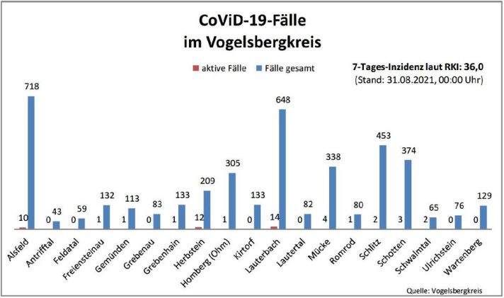 Für Donnerstag meldet das Gesundheitsamt des Vogelsbergkreises insgesamt 13 Neuinfektionen mit SARS-CoV-2, verteilt im gesamten Kreisgebiet. Acht Menschen meldeten sich bei der Behörde als genesen – diese betreut nun insgesamt 66 aktive Fälle. Für das Kreisgebiet weist das Robert-Koch-Institut eine Sieben-Tages-Inzidenz von 43,6 aus. Hessenweit liegt der Wert bei 95,2. Die Übersicht für den Vogelsbergkreis: […]