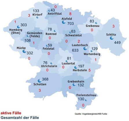 Acht Neuinfektionen mit SARS-CoV-2 meldet das Gesundheitsamt des Vogelsbergkreises am Dienstag. Die Gesamtzahl der Fallzahlen seit Beginn der Corona-Pandemie im Kreis steigt dadurch auf 4110. Acht Menschen haben sich als genesen gemeldet – die Behörde betreut zurzeit 27 aktive Fälle. Die Sieben-Tage-Inzidenz für den Vogelsbergkreis liegt laut Robert-Koch-Institut bei 15,1, für Hessen ist der Wert […]