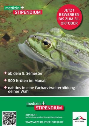 Im Studium nicht jeden Cent dreimal umdrehen müssen – das klingt fast zu schön, um wahr zu sein. Doch das geht: mit dem Stipendium „medizin+“ des Vogelsbergkreises. Denn der Kreis zahlt Medizinstudenten ab dem 5. Semester 500 Euro im Monat, wenn sie sich im Gegenzug dazu verpflichten, sich später als Arzt für mindestens drei Jahre […]
