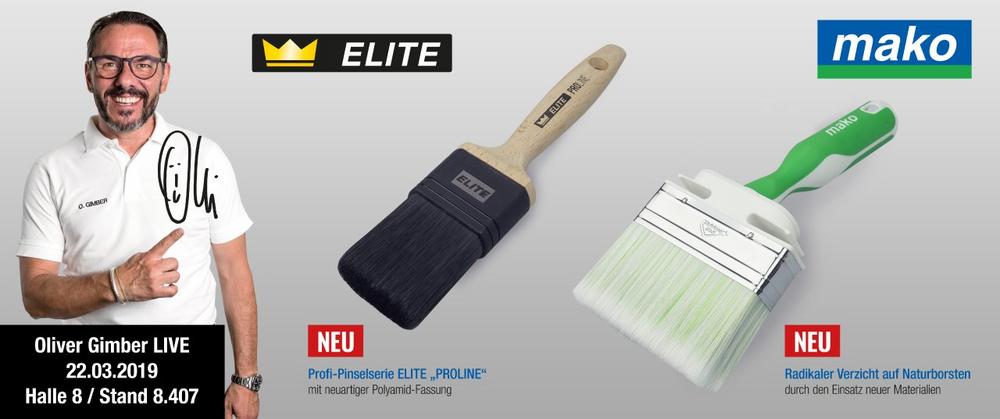 Auf der FAF 2019 läutet der Spezialist für Malerwerkzeug und Zubehör eine neue (Pinsel-)ära ein. Gleich zwei Neu-Entwicklungen haben im mako Pinsel-Sortiment ihren Platz gefunden. Im Profi-Bereich ELITE wird in der Serie "PROLINE" eine neuartige Polyamid-Fassung eingesetzt. Einige Vorzüge der neuen Fassung sind: eine lange Lebensdauer, keine Wasser- und Farbrückstände am Ansatz der Fassung durch […]