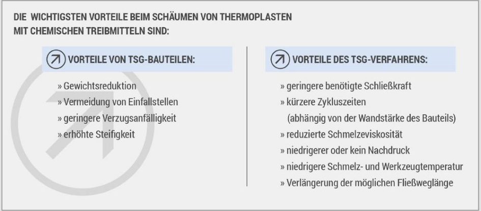 Das Thermoplast-Schaumspritzgießen (kurz TSG) ist ein Sonderverfahren im Bereich des Kunststoffspritzgießens. Bei diesem Verfahren lässt man den thermoplastischen Kunststoff in der Kavität aufschäumen, indem man dem Polymer in der Spritzgießmaschine ein Treibmittel zugibt. Beim Spritzgießen dient der Einsatz von Treibmitteln dazu, Einfallstellen zu vermeiden, dickwandige Formen herzustellen und / oder Gewicht einzusparen. TSG ist mit […]