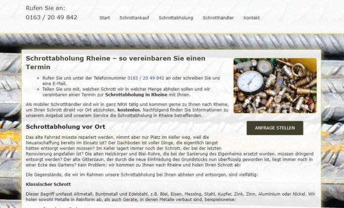 Die Schrottabholung Mönchengladbach ist täglich im Ruhrgebiet und ganz NRW unterwegs, um Metallschrott von Privatpersonen und Unternehmen einzusammeln. Dafür stehen spezielle Fahrzeuge zur Verfügung, die ein effizientes Arbeiten und damit eine kurze Verweildauer beim Kunden ermöglichen. Ziel ist es, den Aufwand, den die Abholung von Schrott verursacht, für den Kunden möglichst gering zu halten. Grundsätzlich wird jede […]