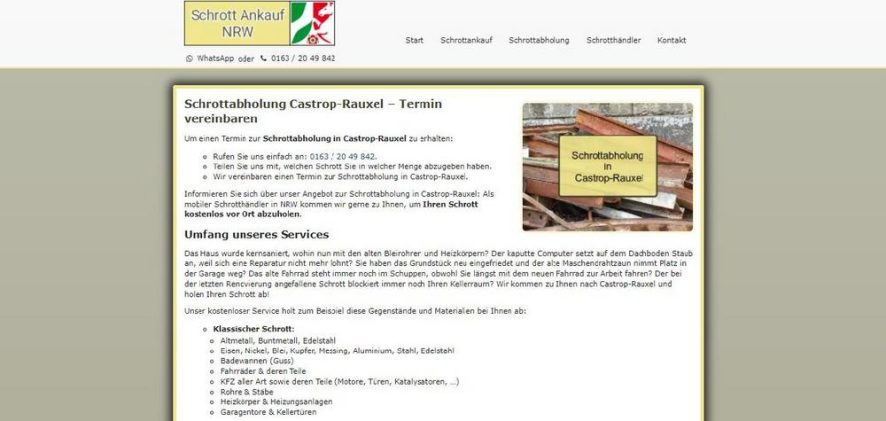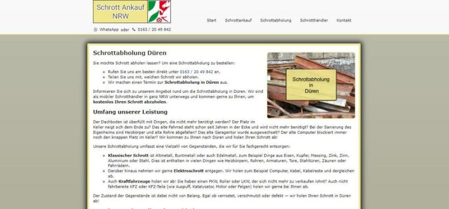 Möchten Sie Ihre alten Haushaltsgeräte und anderen Schrott in Düren sauber und ordnungsgemäß entsorgen, ohne dabei selbst tätig zu werden? Die mobilen Profis von Schrottankauf-NRW sorgen bei Ihnen für eine schnelle und effiziente Entlastung und garantieren Ihnen eine ordnungsgemäße Entsorgung. Der kostenlose Service von Schrottankauf-NRW richtet sich dabei an private und gewerbliche Kunden sowie an […]