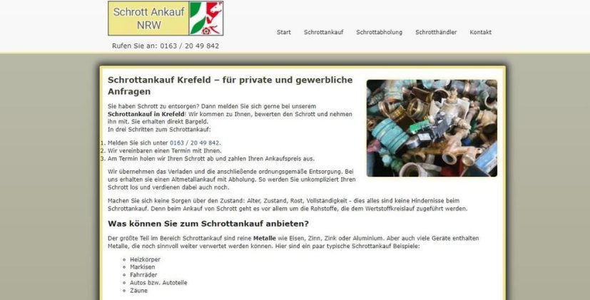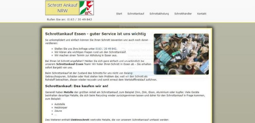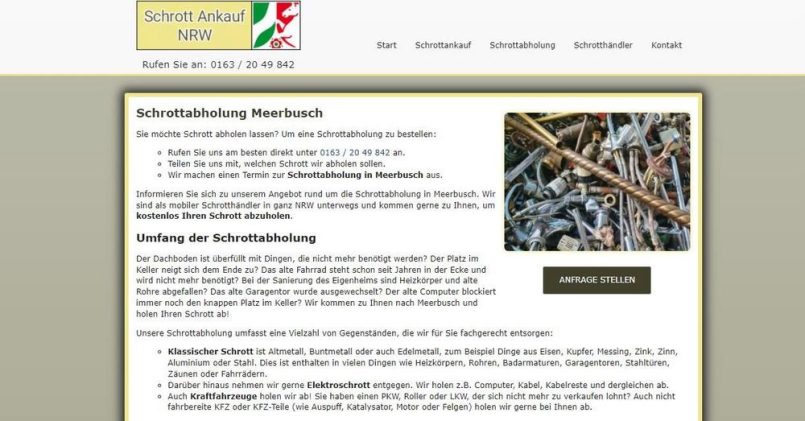 Die Schrottabholung Recklinghausen ist täglich im Ruhrgebiet und ganz NRW unterwegs, um Metallschrott von Privatpersonen und Unternehmen einzusammeln. Dafür stehen spezielle Fahrzeuge zur Verfügung, die ein effizientes Arbeiten und damit eine kurze Verweildauer beim Kunden ermöglichen. Ziel ist es, den Aufwand, den die Abholung von Schrott verursacht, für den Kunden möglichst gering zu halten. Grundsätzlich […]