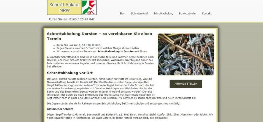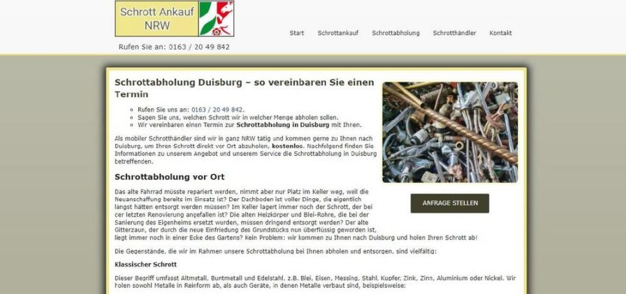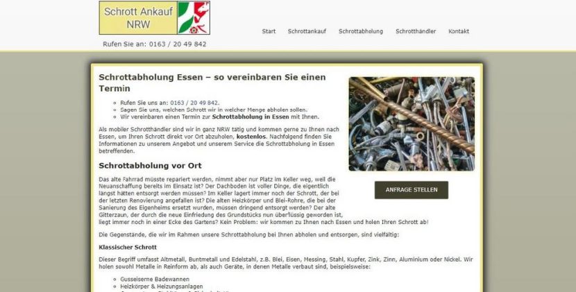 Der Schrottankauf ist quasi auf den Straßen Gelsenkirchens zuhause. Seine Fahrzeuge sind in der Stadt unterwegs, um Schrott aus Privathaushalten und von Unternehmen abzuholen. Dank seiner langjährigen Erfahrung vertrauen ihm die Bürger und Firmen, wann immer es um die Schrottabholung, den Schrottankauf, die Zuführung zum Recycling und den verantwortungsvollen Umgang mit den wertlosen Bestandteilen in […]