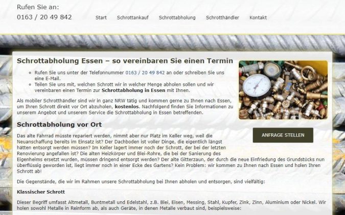 Gerne wird Schrott zu den überall im Stadtgebiet verteilten Wertstoffhöfen gebracht. Was im Fall von Grünschnitt und Tapetenresten sinnvoll ist, sollte in Bezug auf Schrott hinterfragt werden. Schließlich gibt es eine weitaus komfortablere Möglichkeit, ihn loszuwerden: die kostenlose Schrottabholung durch den Schrottabholung Köln. Der Händler ist in Köln und dem gesamten Ruhrgebiet unterwegs, um Elektroschrott, Computerschrott und Mischschrott jeder Art einzusammeln. […]