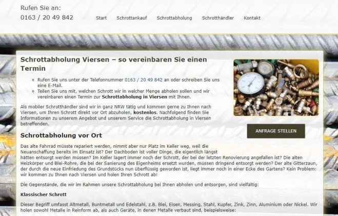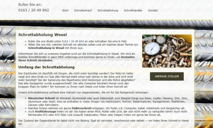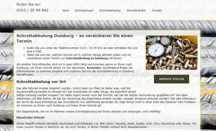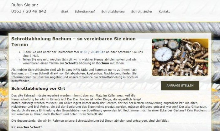 Wann immer Sanierungs- und Renovierungsarbeiten anstehen, fällt jede Menge Mischschrott an. Seien es alte Heizungsanlagen inklusive Tanks, Heizkörpern und Rohren, seien es diverse Bauteile und Gerätschaften: Sie alle werden vom Schrottabholung Dorsten für den Kunden kostenlos demontiert und abtransportiert. In einem gewissen Umfang werden außerdem Aufräum- und Abbrucharbeiten übernommen. Im Mittelpunkt des Handelns des Schrottankauf Dorsten steht eine […]