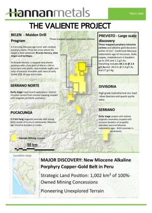 Hannan Metals Limited („Hannan” oder das „Unternehmen”) (- https://www.commodity-tv.com/play/hannan-metals-ceo-gives-a-corporate-update-valiente-drill-results-available-shortly/ -) (TSXV: HAN) (OTCPK: HANNF) freut sich, die Identifizierung einer neuen Goldzone in Honda Creek bekannt zu geben, die sich 1,3 km bis 2,1 km süd-südwestlich des Previsto Central-Prospekts in seinem zu 100 % unternehmenseigenen Valiente-Projekt in Peru befindet. Wichtige Punkte: 1. Bedeutende neue Goldzone identifiziert: […]