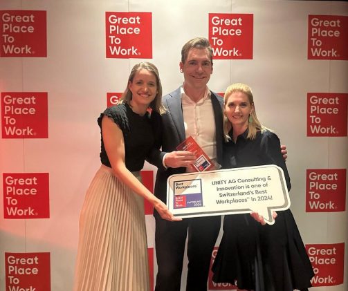Der Managementberatung UNITY Schweiz wurde gestern Abend im Kaufleuten Zürich vom unabhängigen Forschungs- und Beratungsunternehmen Great Place to Work® die Auszeichnung Best Workplaces™ Switzerland 2024 verliehen. Nachdem das Unternehmen bereits in Deutschland in gleich drei Kategorien – als einer der besten Arbeitgeber Deutschlands, Nordrhein-Westfalens und im Consulting – ausgezeichnet wurde, sind Nicolina Litschgi und Moritz […]